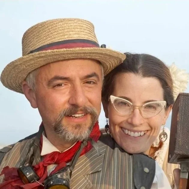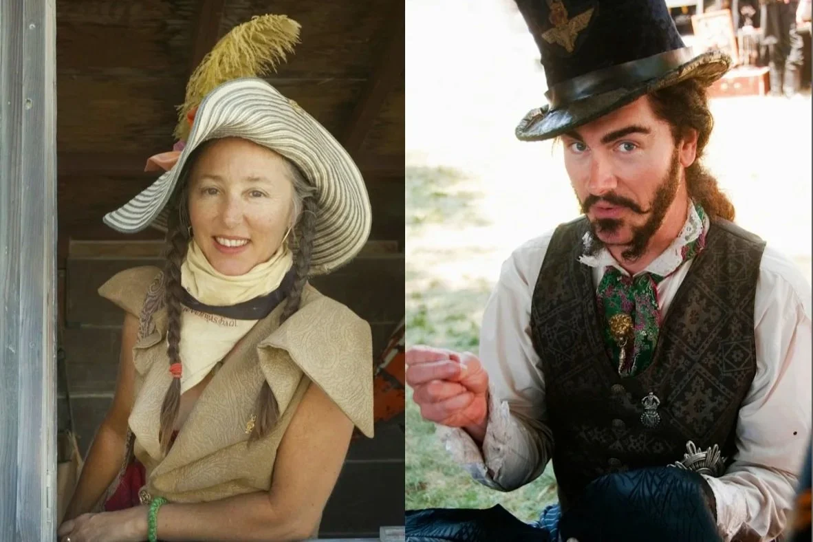Oliver Lowe and Deborah Sciales are Hibernian fashion consultants. They are artists and longtime Burners who help with all sorts of tasks at Obtainium Works. Deborah is the driver of our mobile Tea Pot at events, and makes exquisite Steampunk wear as Dash and Bag.