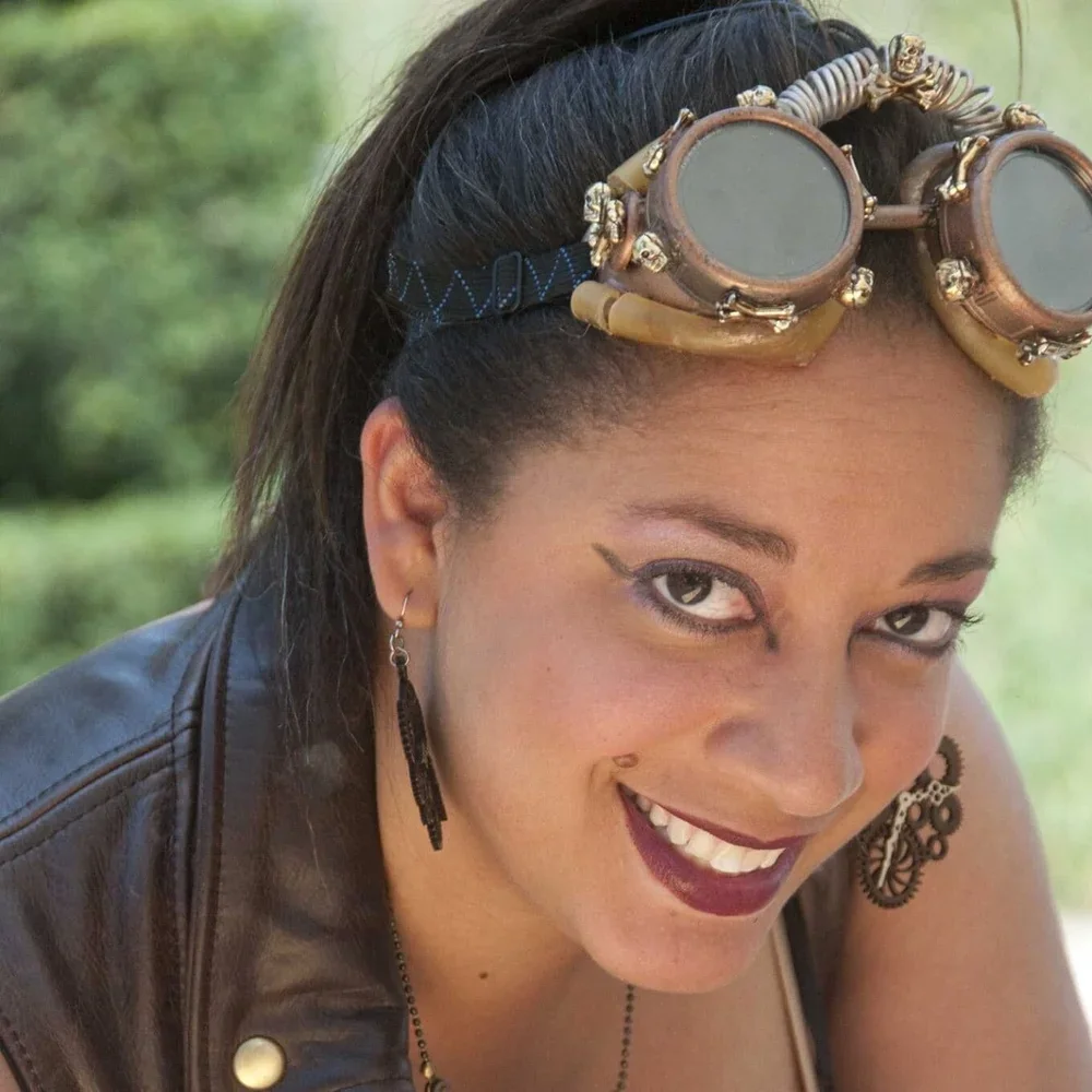 Eli Meyer & Judi Morales Meyer are mountain-hippy makers focused on sustainability. Eli works in energy-saving and tinkers with RC vehicles. He works with Shannon O’Hare, colorizing & digitizing illustrations, and collaborated on Robots Rumble. Judi does event planning and teaches upcycled sewing at Truckee Roundhouse Makerspace, manages the Obtainium event Vendors and Website. The couple travels from their secret lab, deep in caves of North Lake Tahoe, to Vallejo (Judi’s hometown) to crew at major events.. Cinder Garden Designs